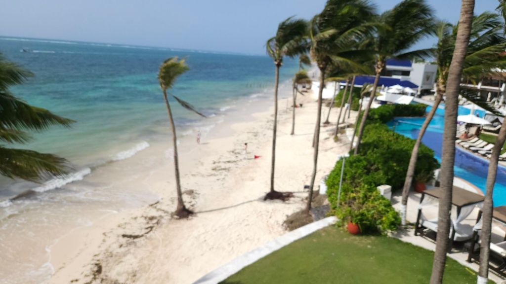 Our room was on the third floor, in the unit that was at the far edge of the property, giving us a fantastic ocean view, complete with the pier. Just to the right, we could see the quiet side of the pool. Down on the beach, the staff was already hard at work, replacing sand that had washed away from the hurricane and raking up the never-ending supply of sargassum seaweed. Honestly, I don’t think I saw a single moment when someone wasn’t out there dealing with that stuff from sunup to sundown.